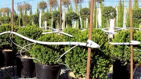 Le travail sur la productivité est passé par une augmentation des surfaces et un investissement dans les équipements de production, deux conditions de base pour rationaliser la production et atteindre un niveau de qualité assurant un bon taux de produits commercialisables. « Il nous fallait plus d'aire de culture pour répondre au pic d'activité qui est apparu à cause du développement des ventes de printemps. Traditionnellement, les conteneurs étaient mis en culture de février à début août pour être “récoltés” dès l'automne suivant pour les petits litrages ou après un an ou plus pour les conteneurs plus gros. Actuellement le plus fort des ventes se déroule au printemps, au même moment que les rempotages, ce qui oblige à avoir plus de surface de culture et des équipements plus performants pour gérer simultanément les mises en place et les expéditions de conteneurs. La seconde mesure a consisté à limiter le nombre de litrages différents avec les 3 litres pour les grandes séries (les 20/80) et les 5 et 10 litres pour les plus courtes. »