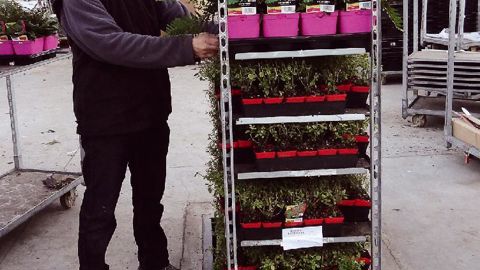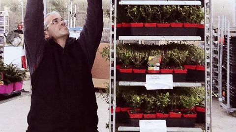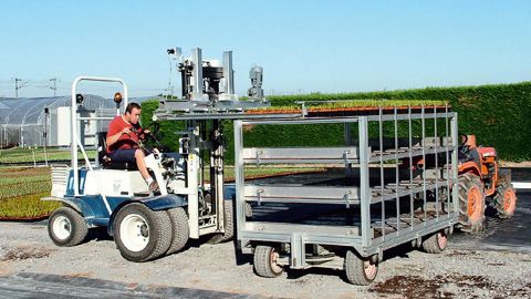 Ces mesures concernent surtout la manipulation et le déplacement des plantes sur les aires de travail et vers les zones de culture ; des tâches effectuées par les manutentionnaires conducteurs de machines ou utilisateurs de rolls. Par exemple, la mise en place des barquettes de godets se faisait manuellement : les prendre, les distancer et les reposer au sol entraînait une grande fatigue pour le dos. Ce travail est maintenant assuré par un Space-Omat (robot placeur) qui peut fonctionner toute la journée (prix avec la fourche : environ 65 000 €). Autre situation : lors de la finalisation des commandes sur les rolls, il fallait porter, à bout de bras, jusqu'à 12 kg pour charger le niveau supérieur. Maintenant, c'est le roll qui descend dans une fosse au fur et à mesure. Une sorte d'ascenseur-étageur permet de charger en permanence sous la ligne des épaules et offre un réel soulagement (prix d'une plate-forme élévatrice : environ 6 000 €). Ainsi, le confort au travail fait naître une nouvelle envie de travailler : et ce n'est pas tabou chez Barrault Horticulture.