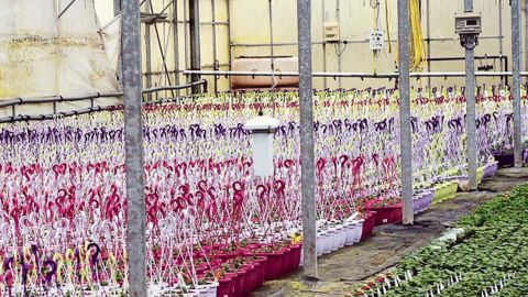 Ainsi, le végétal occupe 2 000 des 3 000 m² de l'espace jardinerie ; la serre chaude représente 14 % des ventes, lissées sur l'année, et la serre froide 35 %, soit 49 % de ventes de plantes, ce qui constitue un ratio honorable à l'heure actuelle. La jardinerie existe depuis 1997. Elle voit passer jusqu'à 700 clients par jour au mois de mai. « Nous les fidélisons grâce au conseil et au service que nous leur apportons », confirme la productrice. « Nous proposons, par exemple, de réaliser gratuitement les jardinières avec les plantes qu'ils ont achetées. Ça nous coûte quelques camions de terreau, mais c'est de la publicité qui fonctionne très bien ! Notre métier c'est de vendre de la plante. Nous devons tout faire pour mettre cela en avant. »