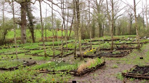 Le terrain acquis restait à mettre en culture. Audrey Funten disposait déjà d'un grand nombre de taxons en attente dans son jardin de la région parisienne ou dans celui de ses parents, dans l'Aube. La première année a été passée à mettre en place les structures de production et à multiplier. Au niveau technique, les choix ont été faits au plus simple : pas d'abris de culture, des voiles d'hivernage ont été achetés mais pas encore utilisés ! Les aires de culture sont réparties autour de l'étang de la propriété, sans toile de culture mais paillées. Le terreau retenu est bio, une démarche a été entamée pour que l'entreprise dispose d'une certification AB. Le terrain n'ayant jamais été traité, il sera inutile d'attendre trois ans pour l'obtenir. La qualité de départ du terreau et le choix des variétés permettent d'éviter d'avoir à fertiliser. Aucun système d'arrosage automatique n'est prévu, tout est arrosé à la main. Le site permet de produire l'ensemble de la gamme prévue, avec une difficulté particulière pour les plantes de bord de mer qui ont besoin d'un drainage important et des difficultés à s'adapter à ce vallon humide.