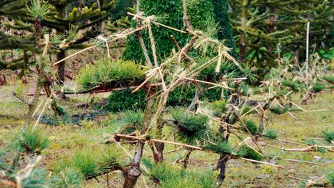 Pinus pentaphylla en cours de formation en bonsaïs de jardin, selon la technique du niwaki. PHOTO : I. CORDIER