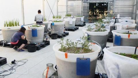 - L'établissement développe son expertise en intégrant de nouveaux projets. Elle est ainsi prestataire d'un projet Anses (2014-2016), pour lequel elle loue son dispositif expérimental. Ce projet, intitulé Expovis (3), a pour objectif d'étudier l'exposition de la population locale à des molécules polluantes issues de l'emploi d'antidépresseurs, herbicides et antibiotiques (carbamazépine, atrazine...) présentes dans l'eau d'une nappe souterraine utilisée pour l'arrosage, le jardinage et le loisir des particuliers. L'étude tient compte des interactions entre eau, plante et substrat. Elle s'effectue sur des sols reconstitués (uniquement avec des composants normalisés : gravier, sable BTP, argile RHP, tourbe noire, quartz...) de façon à s'approcher le plus possible de ceux de la plaine de la Vistrenque où se trouve la nappe. Nymphéa met à disposition les microcosmes et la serre permettant de contrôler les paramètres climatiques. Quatre végétaux de consommation, arrosés avec de l'eau de forage, sont étudiés : salade et radis, tomate, riz, respectivement pour des cycles court, moyen et long.