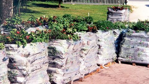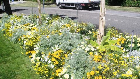 La mécanisation n'explique pas seule le succès de la SCEA. « Les tapis fleuris libèrent un temps précieux, non négligeable au printemps, une période chargée pour les services espaces verts », explique Alain Chamoulaud. Outre un aspect esthétique immédiat, grâce aux plantes déjà bien développées (10-12 cm), ils offrent, à surface égale, un bilan économique avantageux, comparés aux godets. « Ainsi, pour 30 m2 de plantation, le tapis se révèle 11 % moins cher. » Qu'est-ce qui explique cette différence ? « Les coûts de main-d'oeuvre essentiellement », affirme l'horticulteur. Dans le cas des massifs réalisés à partir de godets, les coûts de plantation puis de désherbage et d'arrachage sont supérieurs à ceux des tapis fleuris (*). Ces derniers sont livrés avec des boudins remplis d'écorce de pin qui servent à séparer les plantes et éviter leur écrasement pendant le transport, et dont le contenu est ensuite épandu entre les végétaux pour servir de paillage (20 l/m2). Outre la fertilisation incorporée au substrat, chaque palette (20 à 30 tapis) est fournie avec un sachet de 800 g d'engrais retard.