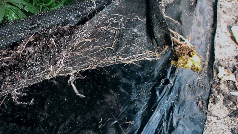 Le système racinaire, après 6 à 8 semaines de culture, emprisonne le substrat et assure une bonne tenue du tapis. PHOTO : VALÉRIE VIDRIL
