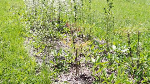 Les zones plus en retrait n'ont pas été recouvertes de terre végétale. À ces endroits, le semis s'est effectué directement sur les déblais plus ou moins inertes. La végétation y est évidemment moins dense que sur les zones ayant reçu de la terre végétale.