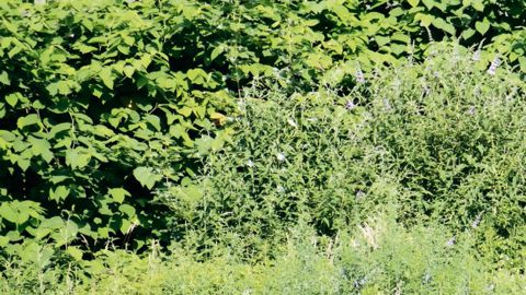 Une fois les remblais mis en place, une couche de terre fertile a été disposée en surface pour permettre l'ensemencement d'espèces végétales appétentes. À l'origine du projet, celle-ci devait être constituée par 15 cm de terre végétale, décapée en début de chantier sur les zones terrassées. Il a cependant manqué près d'un tiers du volume prévu. « Cette différence s'explique difficilement. Nous avons certainement surestimé l'épaisseur de terre disponible sur le site existant ou le décapage a été trop superficiel. Toujours est-il que le volume disponible était déficitaire et en faire venir de l'extérieur n'était pas envisageable pour des raisons budgétaires. Cela nous a conduits à réduire la couche d'apport à 10 cm au lieu de 15 cm et à privilégier les zones les plus visibles de la route », indique Yves Crosaz, directeur de Géophyte. Les secteurs les plus en retrait n'ont ainsi pas été recouverts de terre végétale et le semis a été effectué directement sur les déblais. On y constate toutefois une reprise végétale même si la végétation y est évidemment moins dense que sur les zones ayant reçu la terre végétale. Les espèces composant le mélange fourrager proposé par le bureau d'études Géophyte (fétuque élevée, ray-grass et un peu de trèfle blanc et de trèfle violet) avaient été validées au préalable par la chambre d'agriculture de Savoie. Relativement plane avant les travaux, cette zone présente aujourd'hui un relief plus modelé rappelant les paysages environnants. Quelques mois après le semis et avec la végétation en place, l'impact des travaux s'est déjà quasiment estompé. Un résultat atteint non sans quelques difficultés, puisqu'il a fallu compter avec la présence de plusieurs foyers de renouées de Bohême (Fallopia x bohemica) sur la zone d'emprise du projet. Une présence qui a nécessité une gestion rigoureuse des travaux de terrassement et de revégétalisation.