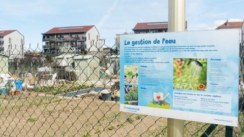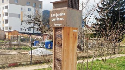 Du mobilier signalétique a été installé dans les espaces nature de la ville, comme ici au coeur des jardins familiaux du Planet. PHOTO : VILLE D'ANNEMASSE