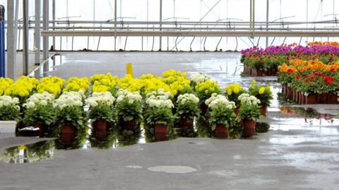 Côté résultat technico-économique, Xavier Froger est tout aussi satisfait. « Le recyclage assure l'économie recherchée. L'eau récupérée est reprise dans un premier bassin d'eau brute, elle passe ensuite dans une succession d'autres, dont un silo et une réserve construite sous la galerie d'expédition. Nous avons une capacité de stockage de l'eau de pluie et de celle recyclée qui nous permet d'être autonomes. L'arrosage des pots par le bas permet un dosage très précis des apports et une répartition homogène de la distribution. Le feuillage n'est pas mouillé et il n'y a pas de stagnation, ce qui assure une bonne qualité sanitaire. L'hiver dernier, nous avons pu garder la collerette des cyclamens sèche sans utiliser le déshumidificateur. L'hygrométrie est satisfaisante. L'homogénéité des cultures permet de “récolter” toutes les plantes en un seul passage et l'espace libéré laisse aussitôt la place à une nouvelle série. Nous arrivons à installer les plantes sans les reprendre pour les distancer. Il y a moins de quantité au mètre carré, mais la qualité est au rendez-vous avec des plannings moins tendus. C'est devenu notre fil conducteur en termes d'investissements. »