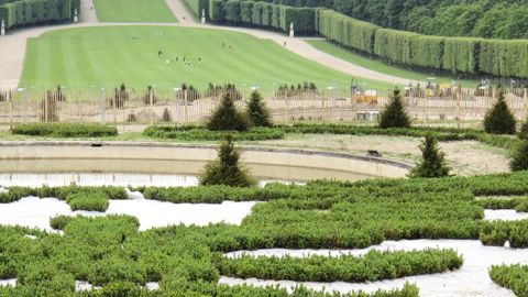 Réaliser des aménagements de buis en plaçant un pied tous les 20 cm relève de la précision. L'entreprise Robert, à qui les travaux ont été confiés, a afin de régler l'emplacement et l'altimétrie des 5 000 piquets nécessaires aux deux broderies du parterre haut. « Un exercice pharaonique qui a duré deux mois », précise Christian Lemoing. Et a permis de se plonger plus de 300 ans en arrière, quand le paysagiste dirigeait les travaux en utilisant quadrillages et cordeaux ! Une action similaire a dû être menée au sein du parterre bas pour installer non pas des buis mais des voliges métalliques (4 km linéaires en tout) permettant de figer 5 km linéaires de séparation entre volutes de gazon et allées de stabilisé.