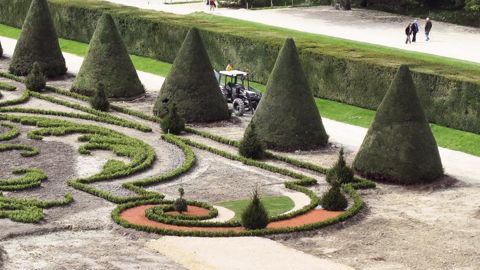 Quinze personnes travaillent sur le site, mais quid de l'avenir de son entretien ? « Notre objectif consiste à ne pas augmenter les dépenses par rapport à ce qui se pratiquait. À savoir une large part de fleurissement (achat et plantation de 70 000 plantes comprenant bulbes, bisannuelles et annuelles), de la taille de buis, et beaucoup de tonte de pelouse. Cela générait des coûts d'achat de végétaux et d'entretien pour les massifs. Désormais, il y aura les buis et les ifs à tailler une fois par an (les jardiniers utiliseront des gabarits en aluminium pour ces opérations), du gazon à tondre et des travaux de désherbage. Le budget devrait être équilibré », indique le maître d'ouvrage.