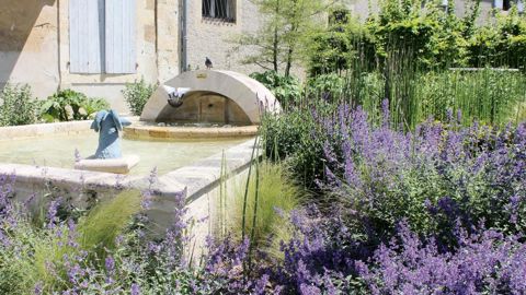 - Le service des espaces verts et propreté gère tout l'aspect paysager. Les premiers réaménagements ont été réalisés en régie afin de recréer des jardins de caractère en rapport avec l'historique des bâtiments auxquels ils se rattachent. « Le fleurissement est devenu une porte d'entrée pour développer le tourisme. Ce fil conducteur a guidé toutes les réalisations suivantes, poursuit Christian Gadras. Nous travaillons avec le service du patrimoine pour les recherches sur l'histoire des bâtiments, les différentes époques. Beaucoup d'espaces verts ne participaient pas à la mise en valeur du bâti, voire dans certains cas les styles étaient complètement en décalage, comme des colonnes de style romain devant une maison moyenâgeuse. Pour les grands aménagements qui comprennent voirie et réseaux, l'étude globale est confiée à un bureau d'architectes, mais toute la partie paysagère nous revient : tracé ou modification des allées, choix des matériaux, des plantations, des décors... Par exemple, Cours Gambetta, le chemin piétonnier a pris place derrière les massifs pour sécuriser le circuit et s'inscrire dans un espace ombragé bordé de noisetiers, un peu à l'image des chemins creux. Encore un peu plus en retrait, les places de stationnement sont masquées par la végétation et n'apparaissent pas des voies de circulation. »