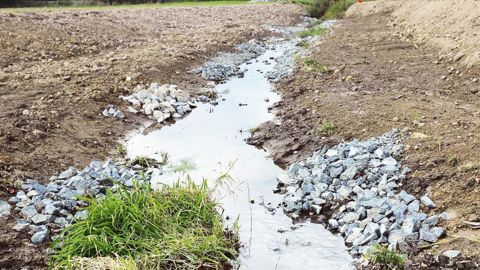 Restaurer les fonctionnalités écologiques et hydrauliques d'une rivière. Dans le cadre des travaux de la ligne à grande vitesse Bretagne Pays de la Loire entre Le Mans (72) et Rennes (35), les mesures compensatoires portent sur près de 920 ha et se traduisent par l'aménagement ou la restauration de différents milieux (zones humides, boisements, rivières, prairies...) et la mise en oeuvre de mesures de gestion confiées principalement à des agriculteurs, mais également à des propriétaires privés et des collectivités territoriales. La compensation au titre de la « loi sur l'eau » comprend des interventions sur des zones humides, des mares et des cours d'eau. Elle concerne notamment la restauration de l'Ouette, un affluent de la Mayenne, sur la commune de Bazougers (53). « Le cours de ce ruisseau a fait l'objet par le passé d'un reprofilage qui a conduit à la création de berges abruptes. Afin de lui redonner des fonctionnalités écologiques et hydrauliques, tout en préservant les activités humaines alentour, nous avons procédé à la re-création du lit majeur et à la reconstitution d'un lit mineur avec des berges aux pentes plus douces et un profil méandriforme. Ces travaux ont rendu nécessaire l'apport de matériaux minéraux, pour reconstituer le matelas alluvial avec un apport ponctuel de pierres et de blocs. Cela a permis la multiplication des habitats et la diversification des vitesses d'écoulement de l'eau, ce qui est propice à l'installation d'une faune et d'une flore diversifiées, à l'amélioration de la capacité auto-épuratrice de l'eau et à la réduction des risques d'inondation. Les travaux de terrassement ont été effectués à l'aide d'un bulldozer et d'une pelle mécanique. Cet hiver auront lieu les plantations de la ripisylve. Nous n'avons pas procédé à un ensemencement complémentaire considérant que la végétation spontanée reprendraitrapidement possession du site. »