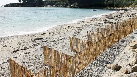 Ganivelles installées sur les dunes d'Arzon, une commune située sur le littoral morbihannais. PHOTO : DERVENN