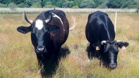Les vaches bretonnes de race pie noir contribuent à la gestion des espaces favorables au développement du panicaut. PHOTO : DERVENN