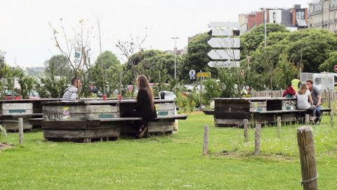 Habitants et touristes viennent pique-niquer, échanger, se reposer au square Daviais où arbres tiges et mobilier très rustique ont été installés. PHOTO : ODILE MAILLARD