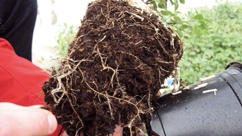 « Ainsi, si 80 % de nos jeunes plants XXL sont recultivés en 5-7 litres, 20 % terminent en cycles courts et sont commercialisés soit à l'automne, soit au printemps suivant. Le JP XXL peut en effet être rempoté en 3-4 litres pour être vendu rapidement et optimiser les surfaces. Par exemple, si en avril, il manque au producteur un complément de gamme, le JP XXL lui permet de récupérer le retard par rapport à un plant en godet, qui nécessite une saison de culture complète. »