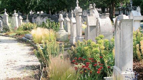 Les tombes abandonnées étaient auparavant désherbées chimiquement en même temps que les allées. Aujourd'hui, elles sont végétalisées. PHOTO : VILLE DE GRENOBLE