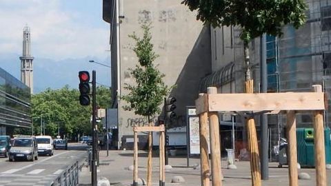 Sur les 291 panneaux publicitaires qui ont été supprimés sur les trottoirs, seuls 34 ont aujourd'hui pu être remplacés par des arbres. Si la ville veut tenir ses engagements, des places de stationnement vont devoir être sacrifiées. PHOTO : VILLE DE GRENOBLE