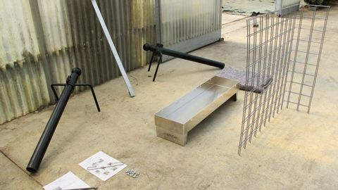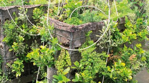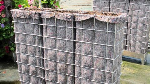 Le CityMur® (modèle Urban : L 100 x P 28 x H 100 cm) est constitué de grilles en acier galvanisé à chaud de maille 10 x 10 cm en fil de 5 mm, fixées à un socle étanche en aluminium jouant le rôle de réserve d'eau. Un feutre absorbant se place à l'intérieur. Les quatre pieds permettent le passage d'un transpalette. PHOTO : VALÉRIE VIDRIL