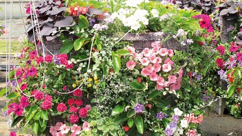 Le CityMur® Urban, proposé depuis 2012, permet l'implantation verticale de plantes afin de créer des garde-corps, des murets et des murs, végétalisés sur les deux faces, sur les côtés et sur le dessus (L 100 x P 28 x H 100 cm). Déplaçable et interchangeable, il est installé pour plusieurs années avec des plantes vivaces, ou pour la saison estivale, hivernale ou printanière. Il peut être livré vide ou planté avec les variétés choisies par le client : annuelles, bisannuelles, vivaces, semi-arbustifs, aromatiques, graminées. « Ce service, qui implique notre responsabilité quant à la réussite du fleurissement, représente 80 % de la demande. » Avec une emprise sur le trottoir de seulement 0,3 m², le CityMur® offre un couvert végétal de 3 m², pour 312 € HT la structure nue. Entre des potelets, un collier antibasculement évite de le renverser. Ce produit peut être adossé à une barrière à l'aide de feuillards. Troisième configuration possible : avec des crochets autoportés pour bloquer la structure au sol. En fin de saison, l'entreprise récupère toutes les structures végétalisées d'annuelles ou de bisannuelles pour les refleurir. Mais si les annuelles représentaient l'essentiel des cultures il y a encore deux ans, la tendance s'est vite inversée, avec aujourd'hui 70 % de vivaces et 30 % d'annuelles en culture.
