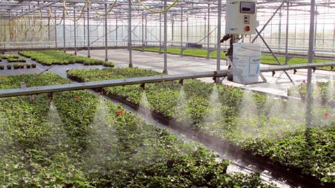 « Nous avons toujours adapté nos structures en fonction des plantes que nous voulions cultiver, avec un climat pour chaque plante », souligne Alain Brichet. C'est ainsi que l'exploitation se subdivise en petits tunnels non chauffés, en tunnels et multichapelles en plastique avec chauffage antigel et en serres en verre chauffées. Les structures légères sont couvertes de film technique Solatrol pour limiter la température en été, avec « une économie incroyable, malgré son coût et sa durée de vie limitée » (*), et de film transparent thermique en hiver. Pour les cultures sous serres, il faut surtout gérer l'humidité ambiante, responsable de maladies fongiques. Pour les éviter, la première action d'Alain Brichet a été de poser la toile hors-sol sur une bonne épaisseur de gravier pour permettre un drainage efficace. Autres pratiques préventives : le chauffage localisé au sol (20 °C) dans les serres destinées à l'enracinement des plantes (cuttings de géranium, Surfinia...) ; les basses températures, avec un chauffage aérien maintenant une température minimale de 10 °C dans les autres abris chauffés. Enfin, le producteur a recours au classique duo aération/chauffage, par temps sec. « L'idéal, c'est d'aérer régulièrement, car il est plus efficace de chauffer un air sec qu'un air humide. » Un nouvel outil permet au producteur de gérer au mieux l'humidité de ses serres : la Microdésu. « L'appareil fonctionne toute la nuit en automatique, et la journée quand le climat extérieur est trop humide pour aérer. »