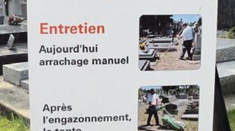 Les cimetières constituent un autre défide végétalisation. Traditionnellement dédiés au granit et au marbre, enclavés en coeur de ville, ils sont également des lieux de promenade et de recueillement pour le public, qui ne doit pas être exposé aux produits phytosanitaires. Pour limiter ces derniers tout en verdissant le site, Fanny Maujean a choisi l'engazonnement. Quant aux hauts murs d'enceinte, ils sont désormais le support de diverses plantes grimpantes (rosiers...).