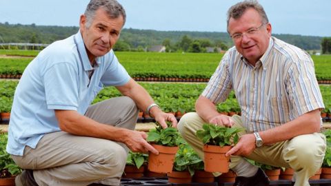 Le groupe Sicamus, à Angers (49). Depuis 2005, il a investi en interne dans un laboratoire de recherche et d'obtention variétale. Actuellement, les sélections se poursuivent sous le contrôle de Christophe Camus, directeur de production. « Pour ce travail sur les nouveautés, nous avons investi 100 000 euros par an sur les cinq premières années, et actuellement nous prévoyons 50 000 euros par an », explique Henri Mercier, son P-dg. Premier résultat concret : la série Rendez-Vous® sortie en magasins pour la fête des Mères 2012 convient à la fois pour l'intérieur et l'extérieur. Robustes, les six cultivars portent des noms évocateurs et offrent des coloris originaux : La Vie en rose®, panaché rose et blanc strié, pointu ; Choco Chic® “Teller”, blanc et tige noire ; Romantique®, blanc vert citronné ; Cocktail®, blanc bordé de rose et frangé ; French Cancan® “Teller” rose, bordé fuchsia ; Élégance® “Teller”, blanc frangé. « Vu le bel accueil lors des tests en magasins, la série va s'enrichir, a priori dès 2013, de trois à quatre cultivars supplémentaires », poursuit Henri Mercier. « Notamment des boules à tige noire (à fleurs bicolores, en rouge et en blanc double). Ou des coloris inversés comme un rouge avec un tout petit liseré noir. Notre objectif est de lancer deux à quatre nouveautés tous les ans, des produits que nous faisons connaître au Salon du végétal, à Angers, et au salon IPM Essen, en Allemagne. Nous avons du potentiel pour au moins cinq à dix ans. »