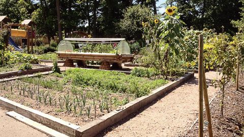 Dans le jardin intergénérationnel implanté dans le parc de la maison de retraite Saint-Charles à Bayon (54), des carrés de terre sont cultivés par les enfants des écoles. PHOTO : ANTOINE LABREUCHE