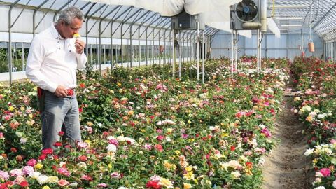 La serre aux rosiers rassemble les lignées parentales. Parmi les critères de sélection, Arnaud Delbard prête une attention particulière aux parfums, sans oublier la résistance aux maladies.