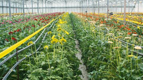 Une large gamme de fleurs coupées... Spécialisée en fleurs coupées, l'entreprise cultive une gamme très diversifiée. Un choix lié au système de commercialisation, avec deux types de gammes : d'une part les productions à l'année, Gerbera, Gerbera germini, Anthurium, Alstroemeria, lys et quelques roses ; et d'autre part les fleurs et fleurettes de saison. Cette diversité implique une technicité forte et un suivi précis des antécédents culturaux afin d'optimiser les surfaces et de limiter les risques sanitaires.