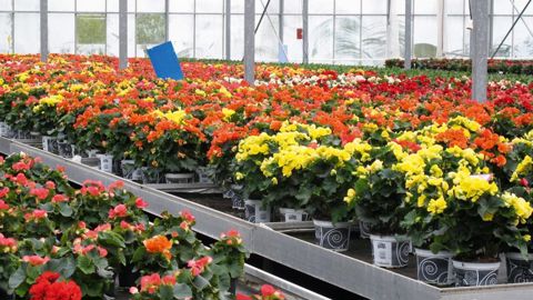 L'entreprise réalise un nouvel investissement chaque année. Ici, une chaîne de rempotage (4 000 pots/h), avec étiquetage et placement sur tablette (Javo). En 2016, c'étaient des lampes photosynthétiques pour les mini-rosiers, dont la demande augmente. Et en 2017, un atelier de composition et un système de récupération des excédents d'arrosage.