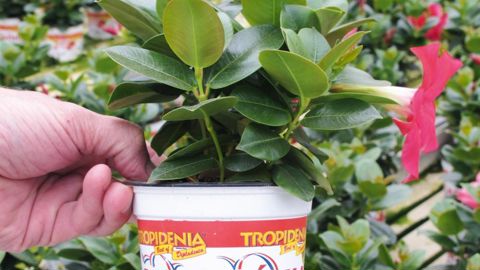 Autre exemple d'un pot personnalisé : celui du Tropidénia (Bury, 83). Les horticulteurs achètent les jeunes plants en vert en novembre pour les vendre au printemps.