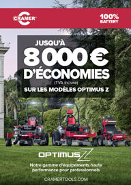 En 2026, Cramer met en place une offre particulièrement attractive, avec une réduction pouvant atteindre 8 000 € TTC pour l’achat d’un Zero Turn OptimusZ. Cette initiative permet de proposer un tarif très proche de celui d’une tondeuse thermique, rendant l’investissement nettement plus accessible. Une opportunité concrète pour accompagner les professionnels encore hésitants dans leur décision de franchir le pas.