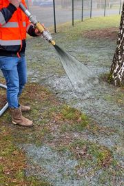Portée par un châssis mécano-soudé avec prise de fourche des quatre côtés pour un déplacement facile à l’aide d’un transpalette, cette cuve peut s’installer sur un pick-up ou une remorque, ou encore à l’arrière d’un camion-benne. Pour cela, il suffit de la fixer par les deux crochets d’arrimage présents à l’avant et à l’arrière de sa structure (quatre crochets en tout). La cuve et la pompe, simple à démonter, sont complétées par un tuyau d’une longueur de 20 m facilitant la projection du mélange tout autour du véhicule porteur.