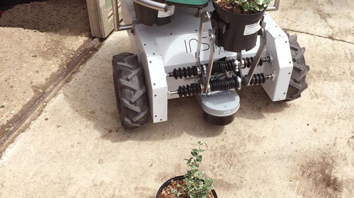 Parmi les robots figurent ceux spécialisés dans le transport. C’est par exemple le cas de Trooper, développé par l’entreprise française Instar Robotics. En totale autonomie, ce robot de manutention de plantes en pots est à destination des pépiniéristes et horticulteurs. Il s’acquitte du déplacement, du regroupement (resserrage) et de l’espacement (distançage) des pots, et peut travailler de nuit. Estimé à environ 30 000 euros l’unité, il est encore en phase de test dans des sites pilotes. Le magasin pour les pots est interchangeable et peut en transporter jusqu’à six à la fois (de deux à vingt litres). Dans le même esprit et déjà sur le marché, le robot HV-100 de l’entreprise américaine Harvest Automation, ou encore BigTop, de la société canadienne AIS.