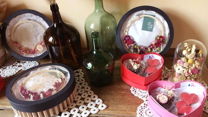 « Afin de raconter mon histoire aux clients et partager mes valeurs autour d’une production locale et écoresponsable », je m’appuie sur un book garni de photos qui expliquent les différentes étapes, de la production au bouquet. « Lors du deuxième confinement, je n’ai pas eu le droit de vendre dans les marchés : j’ai donc mis en ligne une boutique dès la fin novembre 2020 pour les fleurs séchées. Ce système a bien fonctionné. J’ai travaillé avec une photographe locale pour mettre en valeur mes créations. À la sortie du confinement, beaucoup de marchés de Noël ont été annulés. Je n’ai pu me rendre qu’à celui de Fontainebleau et celui de ma commune, La Grande-Paroisse, mais les ventes de fleurs séchées ont été au rendez-vous. »