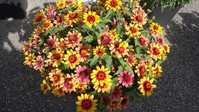 | Zinnia hybrida ‘Profusion’ Red et Red Yellow Bicolor | Nouveautés qui complètent la série Profusion. Très florifères, intéressants pour le coloris bicolore jaune et rouge. Restés sains et fleuris jusqu’à l’automne à Paris. Particulièrement remarqués pour leurs couleurs lumineuses (obtention Sakata). Red Yellow Bicolor a reçu une médaille d’or 2021 de la part d’All American Selection (AAS) et de Fleuroselect. | NK et P |