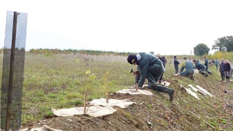 Quarante-cinq étudiants en BTS « gestion de la nature » et bac pro « gestion des milieux naturels et de la faune » des lycées de Sées (61) et de la Lande de la rencontre, à Saint-Aubin-du-Cormier (35), ont contribué à l'aménagement du chantier de la ligne à grande vitesse LGV Bretagne - Pays de la Loire. PHOTO : UPGE