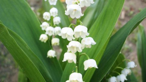 Muguet (Convallaria majalis), liliacées. Toutes les parties de la plante contiennent des substances irritantes, ainsi que des dérivés toxiques pour le coeur. L'ingestion d'une grande quantité de plante nécessite une prise en charge à l'hôpital avec monitoring cardiaque. PHOTO : JÉRÔME JULLIEN