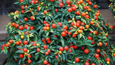 1. Pommier d'amour ou oranger de Savetier (Solanum pseudocapsicum), solanacées. L'ingestion de ses baies à maturité provoque des troubles digestifs.