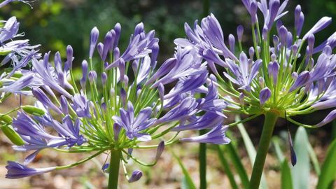 2. Agapanthe commune (Agapanthus praecox), agapanthacées. Sa sève est toxique et provoque des douleurs dans la bouche, ainsi que des irritations et des sensations de brûlure sur la peau.