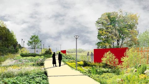 La seconde partie du chantier, sur 6 000 m2, est actuellement en cours. Son contenu a été déterminé en concertation avec les habitants (un comité de pilotage présidé par le maire de Courbevoie et où les habitants étaient représentés a piloté les travaux). « Il a fallu faire des choix », nuance cependant Jacques Macret. « Les attentes exprimées étaient nombreuses. Nous avons montré aux gens que faire une mare, c'était possible, mais qu'il fallait qu'elle soit suffisamment grande pour qu'une vie s'y développe. » Un labyrinthe, des zones de jardins partagées vont également voir le jour. « Les gens avaient peur que les élus modifient le fruit de leur concertation. Mais au final, le comité de pilotage a validé leur proposition. Pour rendre hommage à la qualité de ce travail en commun, un gros chêne sera planté : il fera office d'arbre à palabres. Une partie de la zone est occupée par une dalle en béton, vestige d'un ancien bâtiment appartenant à un traiteur, mais qui a brûlé. Il était difficile de l'évacuer totalement, mais elle sera percée dans certaines zones pour planter des poches de végétaux : ce sera le jardin des reconquêtes.