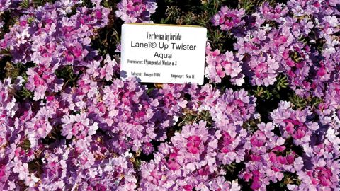 Verbena hybrida Lanai® Up 'Twister' Aqua. PHOTO RATHO