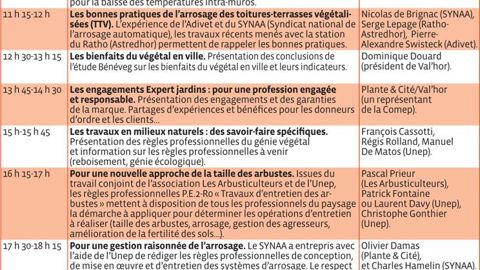 Autres points forts de Paysalia : les conférences, avec encore cette année une vingtaine de rendez-vous sur des thèmes précis et des formats très courts (45 minutes) pour faire le tour d'un sujet de manière synthétique et concise ; le Trophée Paysalia, qui récompensera les innovations dont la conception et la réalisation ont un impact positif sur l'environnement ; et comme en 2011, la finale du concours national de reconnaissance des végétaux (le Lien horticole n° 859 du 16 octobre 2013, page 6). Rendez-vous est pris les mercredi 4 et jeudi 5 décembre pour les candidats répartis dans neuf catégories afin d'identifier en soixante à quatre-ving-dix minutes de vingt à quarante végétaux sélectionnés parmi une liste de six cents plantes à connaître. Soixante-dix-neuf candidats représentant seize régions y participeront, preuve que la connaissance des végétaux reste un exercice prisé par les jeunes...