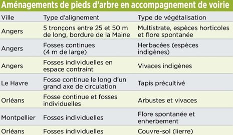 Le contexte spécifique impose une réflexion ciblée pour favoriser le maintien de ces aménités dans le temps : le programme COGEP (conception et gestion écologique des pieds d’arbre 2021-2024) porté par Plante & Cité, en partenariat avec Astredhor et le campus Vert d’Azur, à Antibes, s’intéresse à ces questions. Une première étape (2021) s'est attachée à réaliser un état des lieux des pratiques en France (typologie de plantation, contraintes techniques, palette végétale, mode de protection, entretien…), en s’appuyant notamment sur l’analyse des retours d’expérience d'une soixantaine de collectivités territoriales.