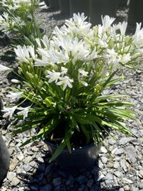 Cette agapanthe très compacte est toutefois naturellement ultra-ramifiée ; elle convient pour petits espaces. Ses ombelles blanc pur sont portées par des hampes florales courtes (10 à 15 cm) et robustes, avec une très abondante floraison qui se prolonge de mai à septembre-octobre. Ces deux atouts sont présents dès le stade jeune.