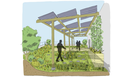 La végétalisation sous la centrale photovoltaïque doit représenter au moins la moitié de la surface de la pergola.